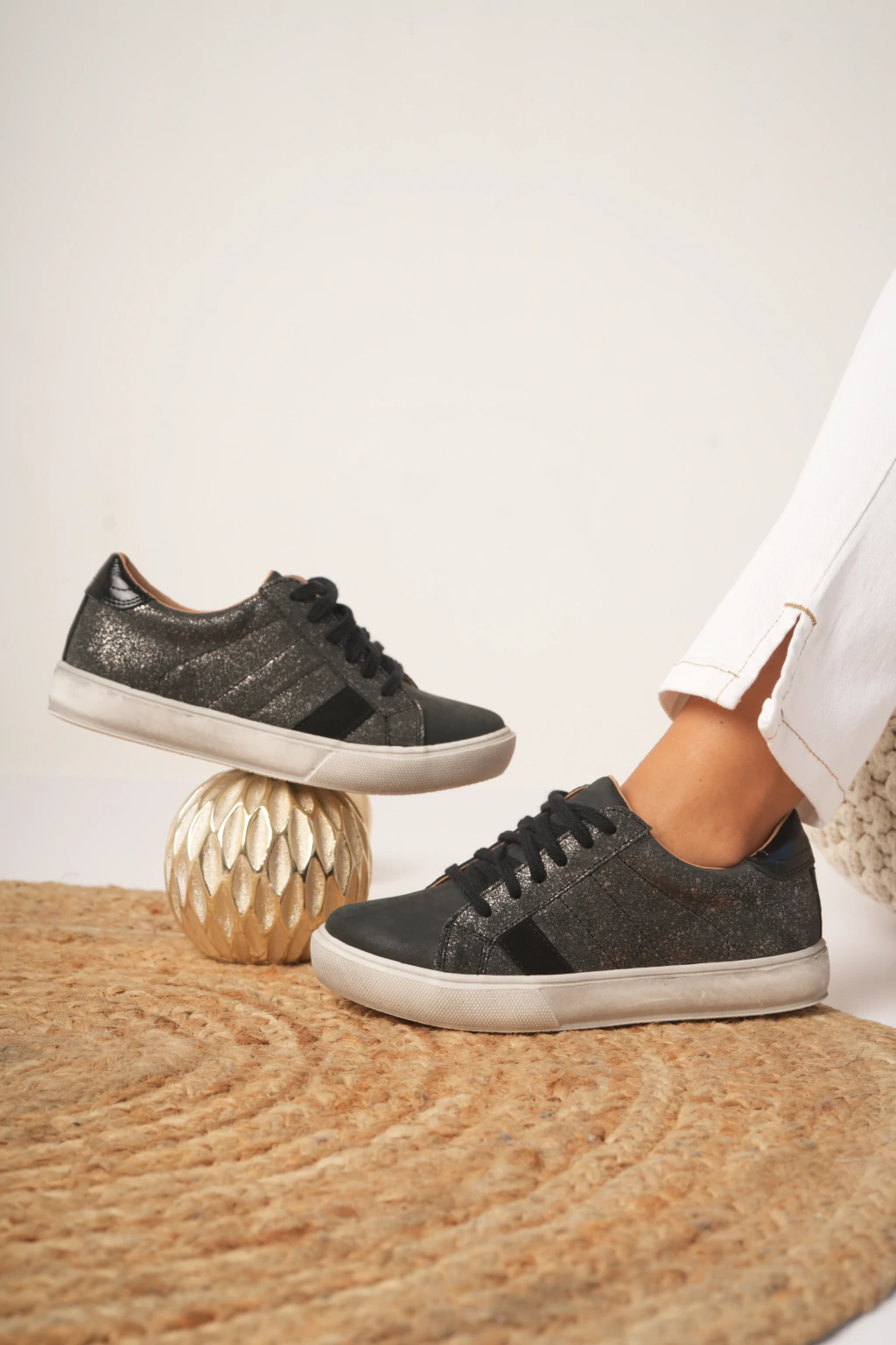 Descubrí las nuevas HOKU nuestras zapatillas bajas confeccionadas con un exclusivo cuero purpurina combinado con cuero negro. Este diseño único aporta un brillo sutil y elegante, ideal para quienes buscan destacar con un toque femenino y moderno.