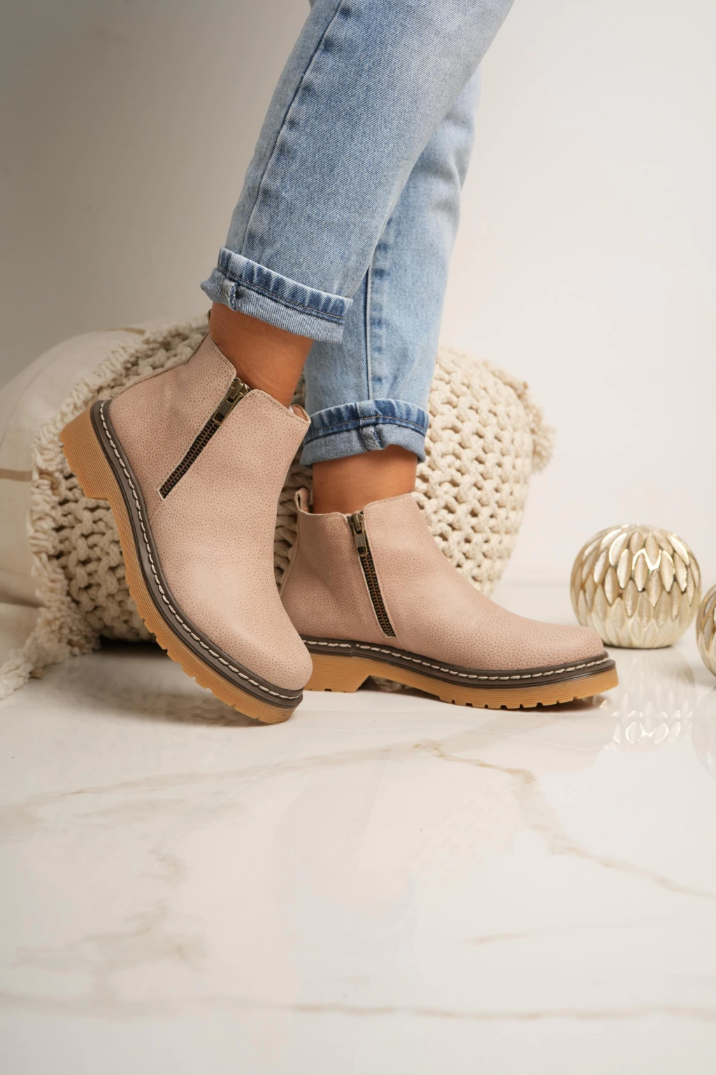 Su suela baja estilo borcego brinda estabilidad y un toque moderno, perfecto para combinar con cualquier outfit casual o más formal. El diseño pensado para la vida urbana asegura que cada momento sea cómodo y con estilo.