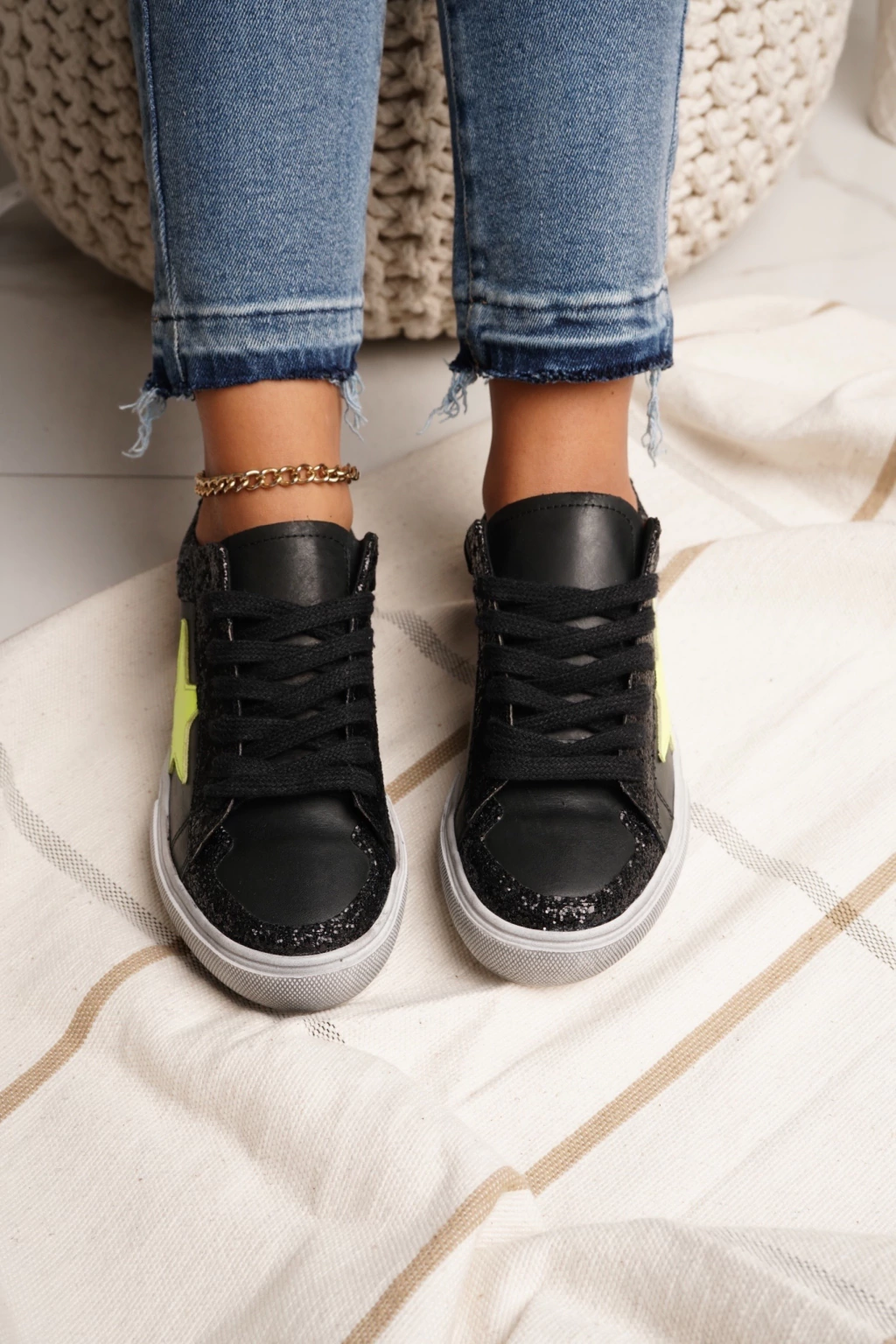 STARDAN es la zapatilla perfecta para quienes buscan un estilo único y sofisticado. La fusión del cuero y glitter, la convierte en un modelo exclusivo que aporta un toque de glamour a cualquier look.. La suela de goma garantiza comodidad y durabilidad, mientras que su confección cuidadosa asegura un calce cómodo y seguro.