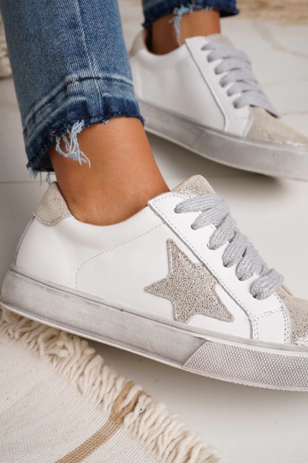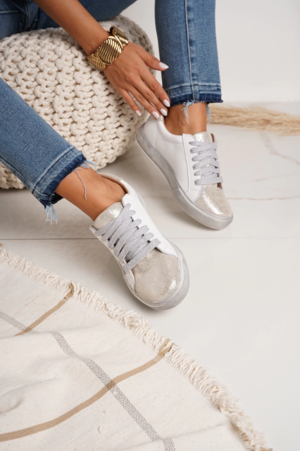 La combinación blanco y plata de este modelo, permite crear looks versátiles que se adaptan a cualquier ocasión, desde un día casual hasta una salida más formal. La suela de goma garantiza una pisada cómoda y segura, ideal para el uso diario.